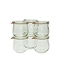 MADE IN GERMANY. BPA-FREE, LEAD-FREE, PVC-FREE AND PHTHALATE-FREE. As seen on your favorite food networks and magazines!. Suitable for water bath, pressure canning, glass can be frozen and baked. Reusable glass jars and BPA free! Wide mouth for easy filling. WECK CANNING JARS ARE MADE WITH THICK GLASS TO WITHSTAND BOILING, STERILIZING AND PROCESSING OVER AND OVER AGAIN. Glass lids preclude issues with rusting, and the tab on the replaceable rubber ring, when facing downwards, indicates clearly that the seal on the jar is intact. NOT JUST FOR CANNING, Weck jars are great for wet and dry food storage. Absolutely gorgeous on your shelf!. Includes 6 jars, 6 lids, 6 gaskets, and 12 clamps for easy canning.
