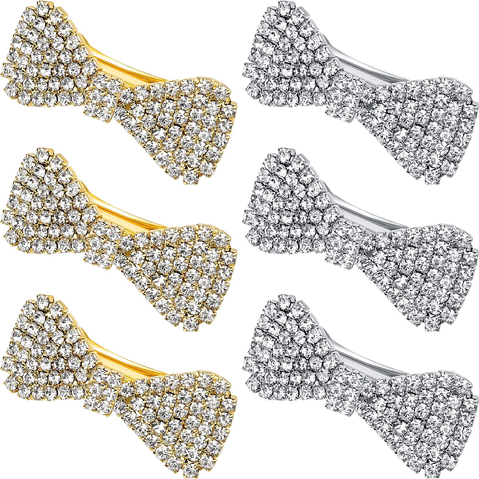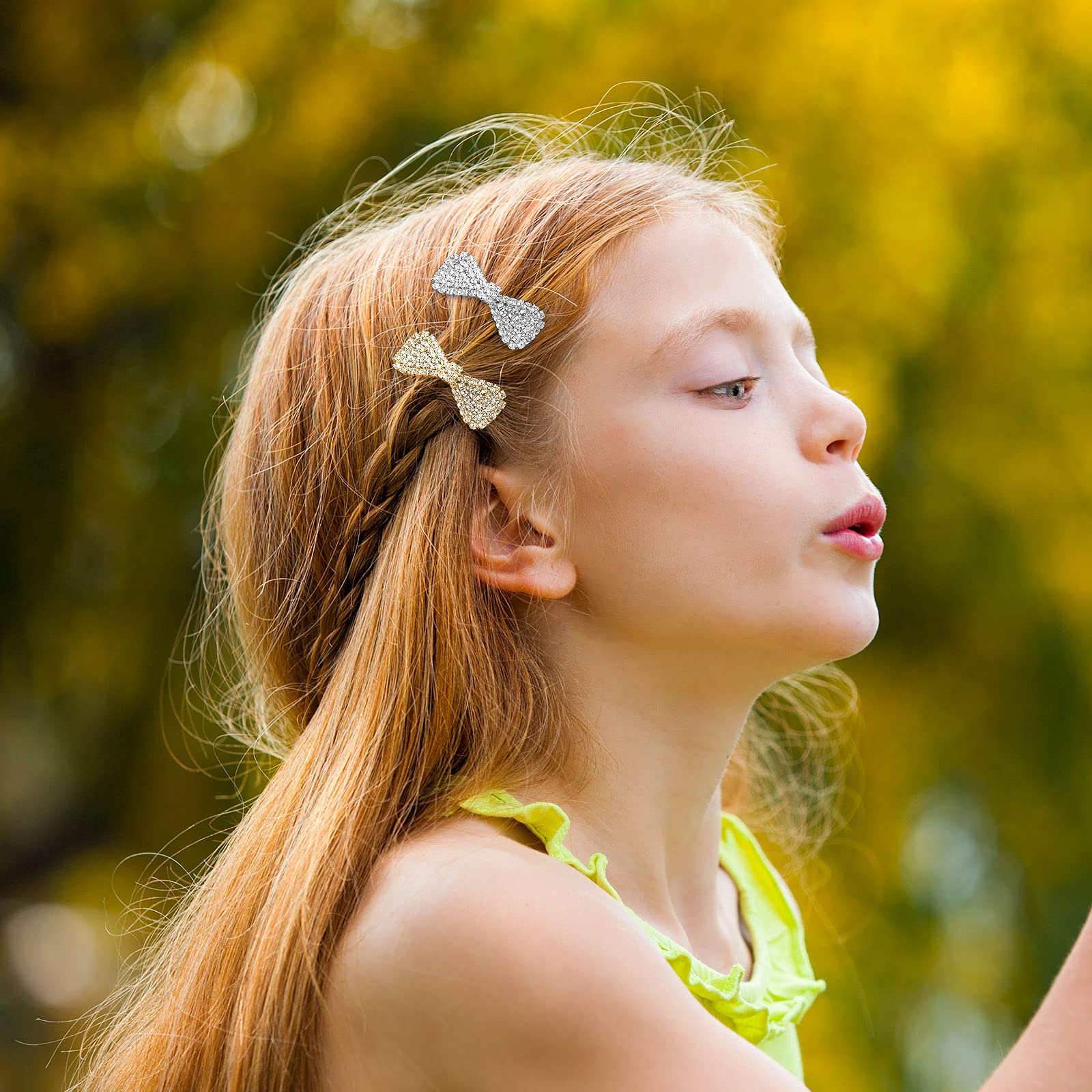 • Delicate hair accessories set: the package includes 6 pieces of rhinestone hair bows barrettes in gold and silver 2 colors, these colors are chic and stylish, easy to go with most of your clothes and hair colors, the quantity is also sufficient for you to use, replace and share