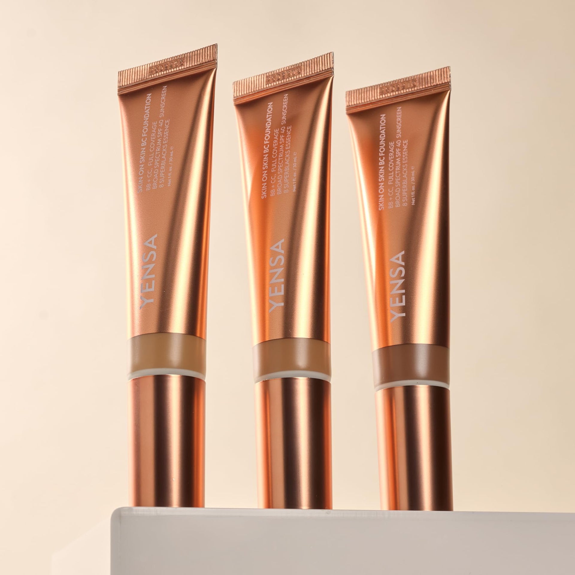 Experience skin-loving coverage with YENSA Skin on Skin BC Foundation, a multitasking makeup foundation that performs as a tinted moisturizer, tinted sunscreen, and foundation full coverage base all in one. This Korean foundation innovation delivers a radiant, skin-like finish while helping to even tone and blur imperfections. Infused with our 8 SuperBlacks Essence, hyaluronic acid, and peptides, the breathable formula supports hydration and firmness without feeling heavy. Designed for everyday wear, it provides SPF 40 broad-spectrum protection to shield skin from daily sun exposure. Whether you're creating a full glam look or reaching for a light foundation for natural days, this face makeup blends effortlessly and wears beautifully. Expect long-lasting comfort, seamless buildability, and a true skincare-meets-makeup experience that adapts to your routine. Layer over primer and apply with fingers, sponge, or brush for the coverage you want without ever compromising your skin’s glow.