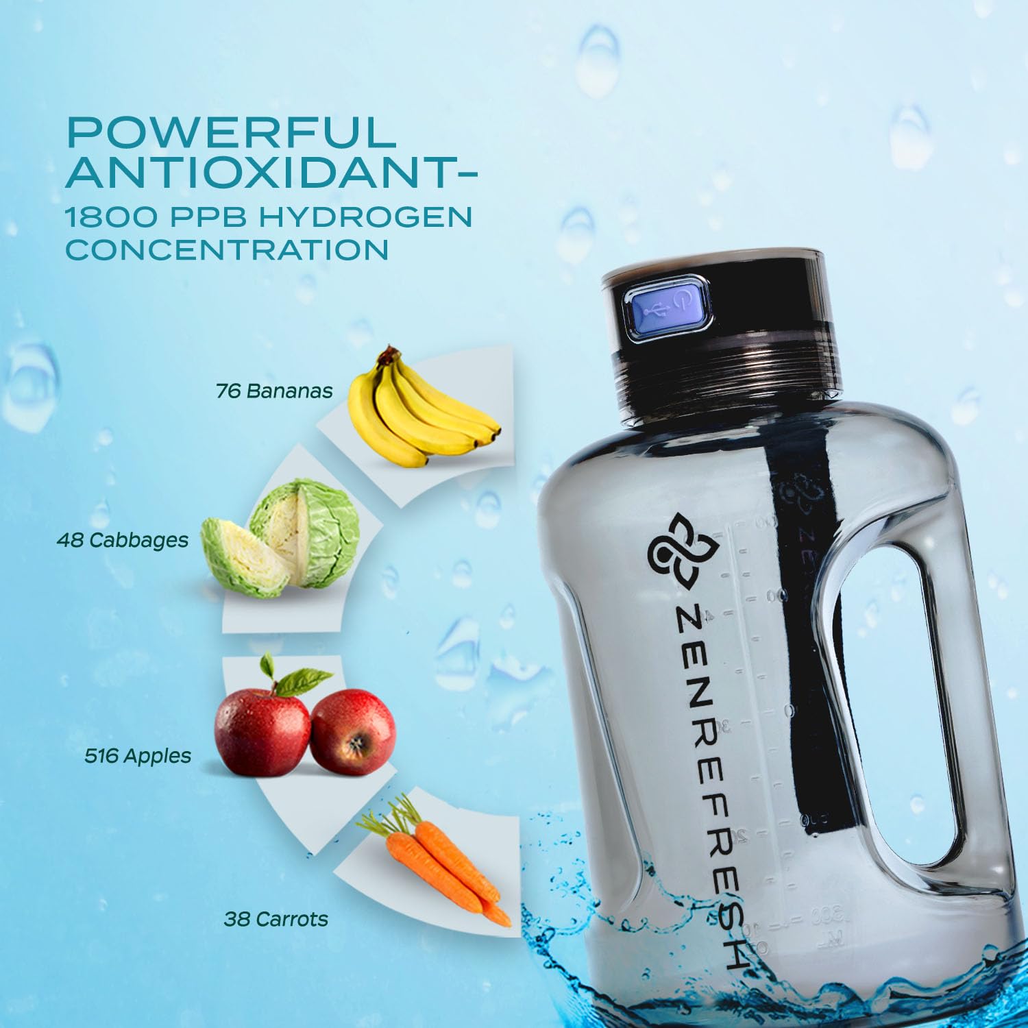• [New & Advanced SPE/PEM Technology]: Zen Refresh bottle works effortlessly with both tap and purified water, requiring no specific water temperatures for optimal performance thanks to the power of new cutting-edge Solid Polymer Electrolyte/Proton Exchange Membrane technology. This technology enhances hydrogen concentration up to 1800 ppb.