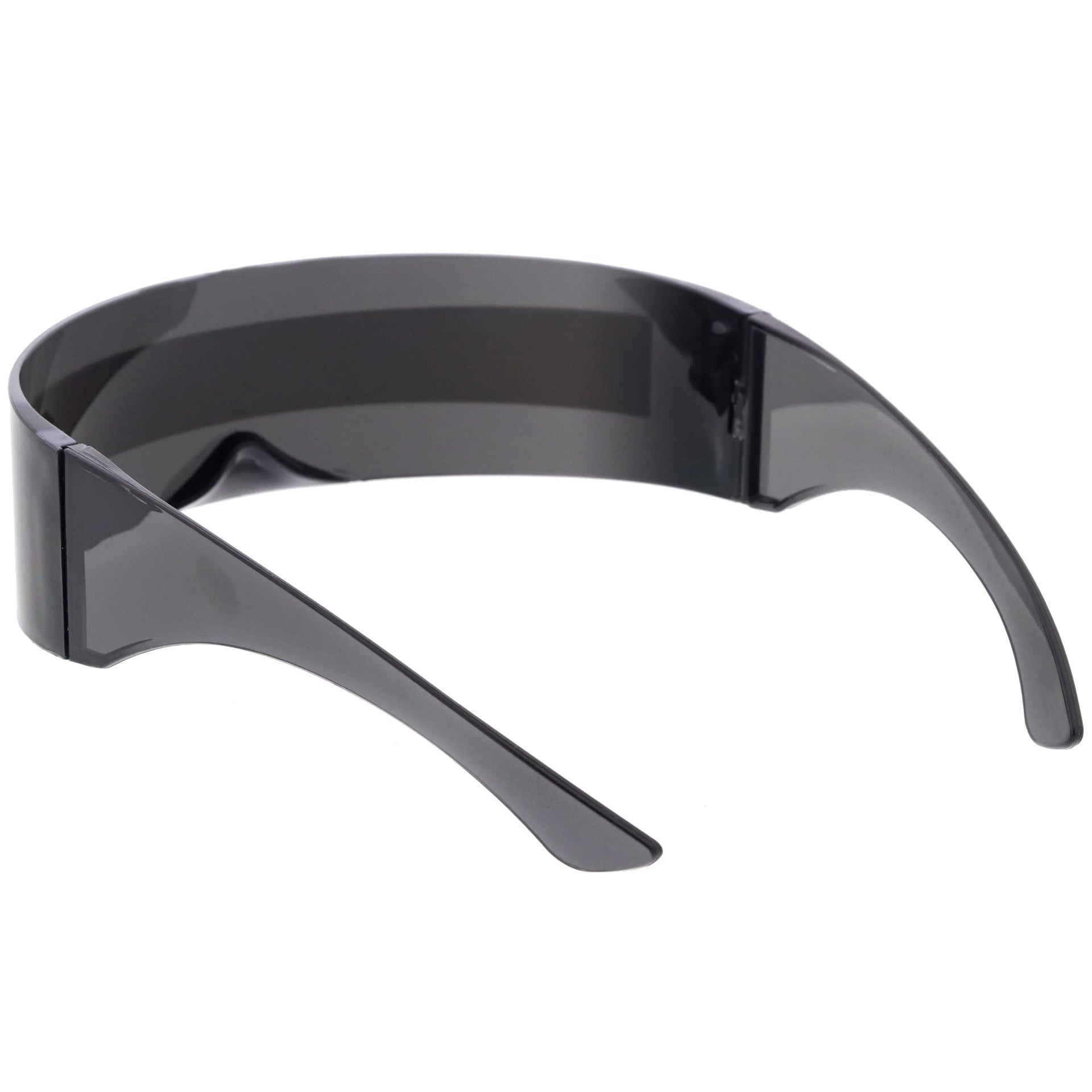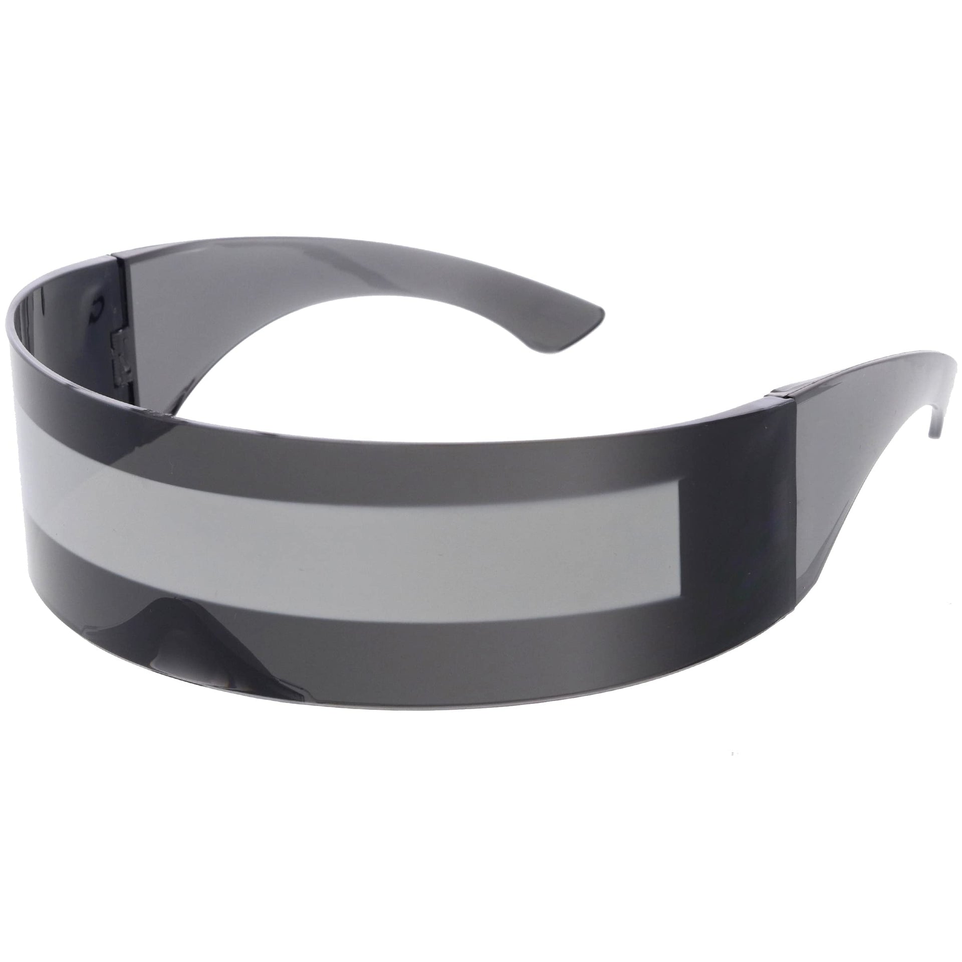 zeroUV - 80s Futuristic Cyclops Cyberpunk Visor Sunglasses with Semi Translucent Mirrored Lens (Smoke/Silver)