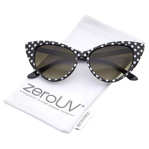 zeroUV - Polka Dot Cat Eye Womens Mod Fashion Super Cat Sunglasses (Black-White/Smoke Gradient)