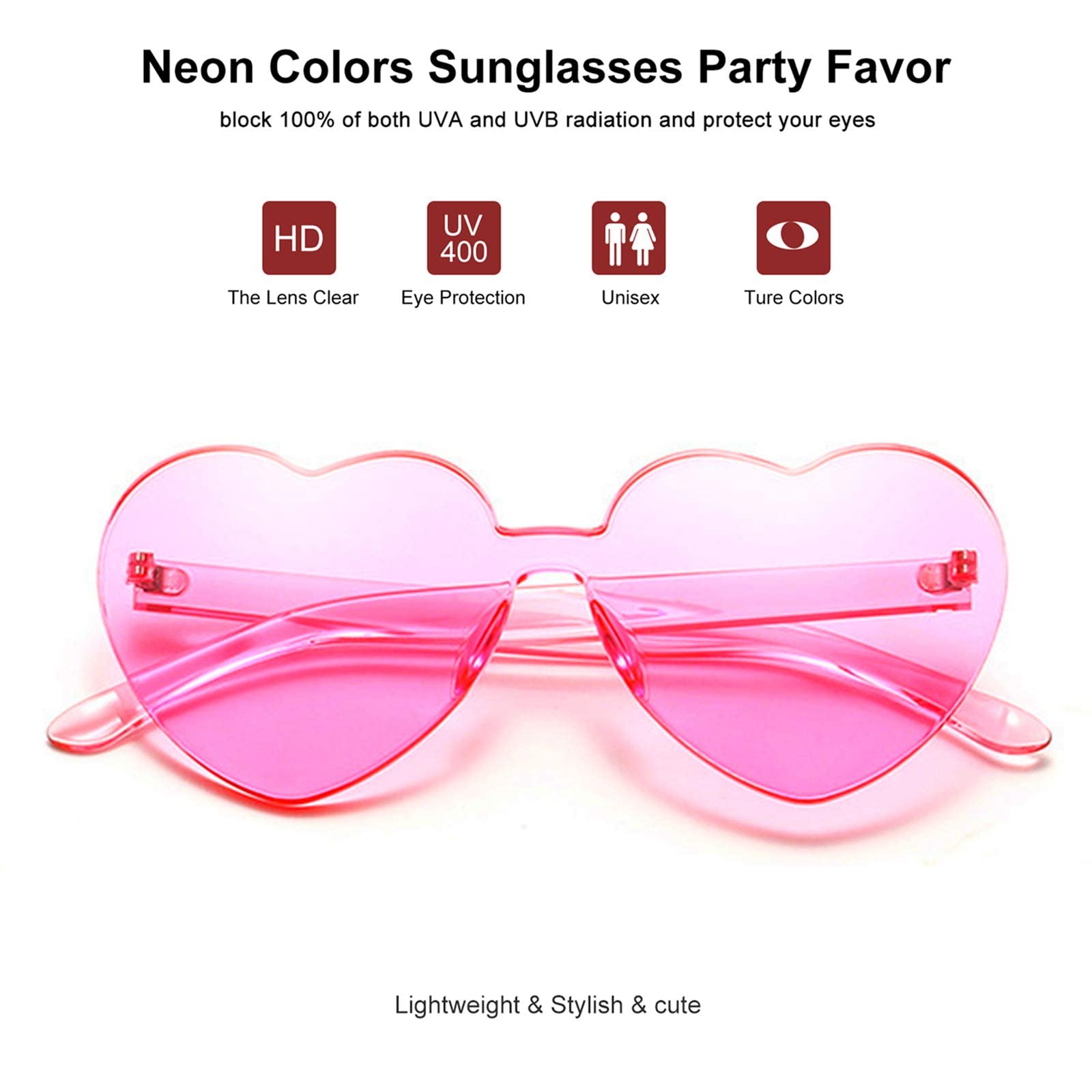 Trendy transparent candy color party sunglasses are designed with heart shaped rimless frame, one-piece design with fresh transparent candy color, easy to match any daily wear and party decorations, ideal for dating, shopping, traveling and attending various parties.