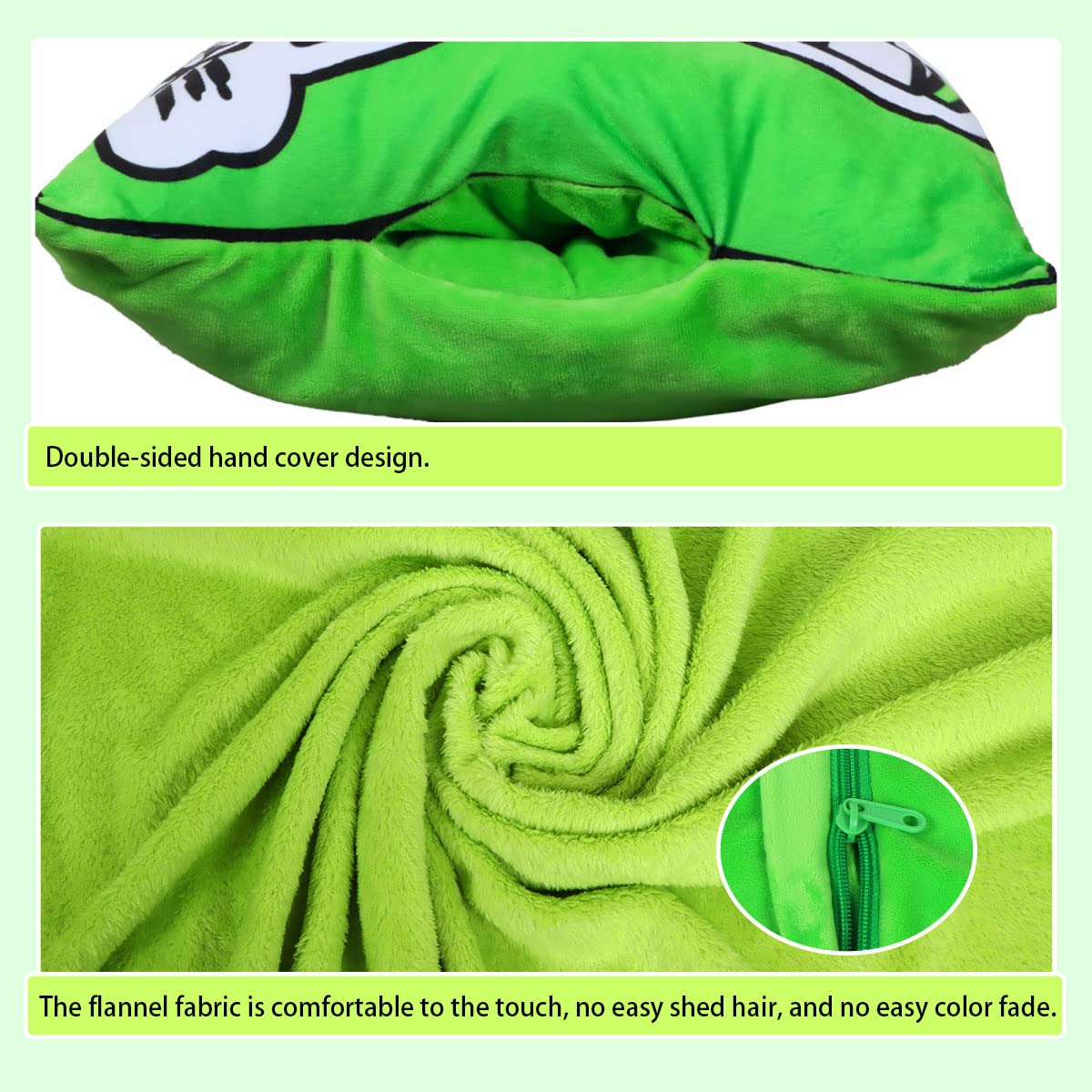 15*15 inch Funny Frog Cozy Cartoon pillow, Lightweight Flannel Blanket.Your little one will love snuggling with their favorite Anime characters. A pillow, throw pillow, hand warmer and blanket all in one, .Suitable for Sofa Bedroom Living Room